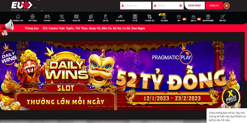 Eubet hay còn gọi là eu9 là nhà cái cá cược trực tuyến uy tín hàng đầu châu Á cũng như tại Việt Nam. Eubet chuyên cung cấp các sản phẩm cá cược như game casino, lô đề, xổ số, cá độ thể thao, bóng đá, slot game, bắn cá,...